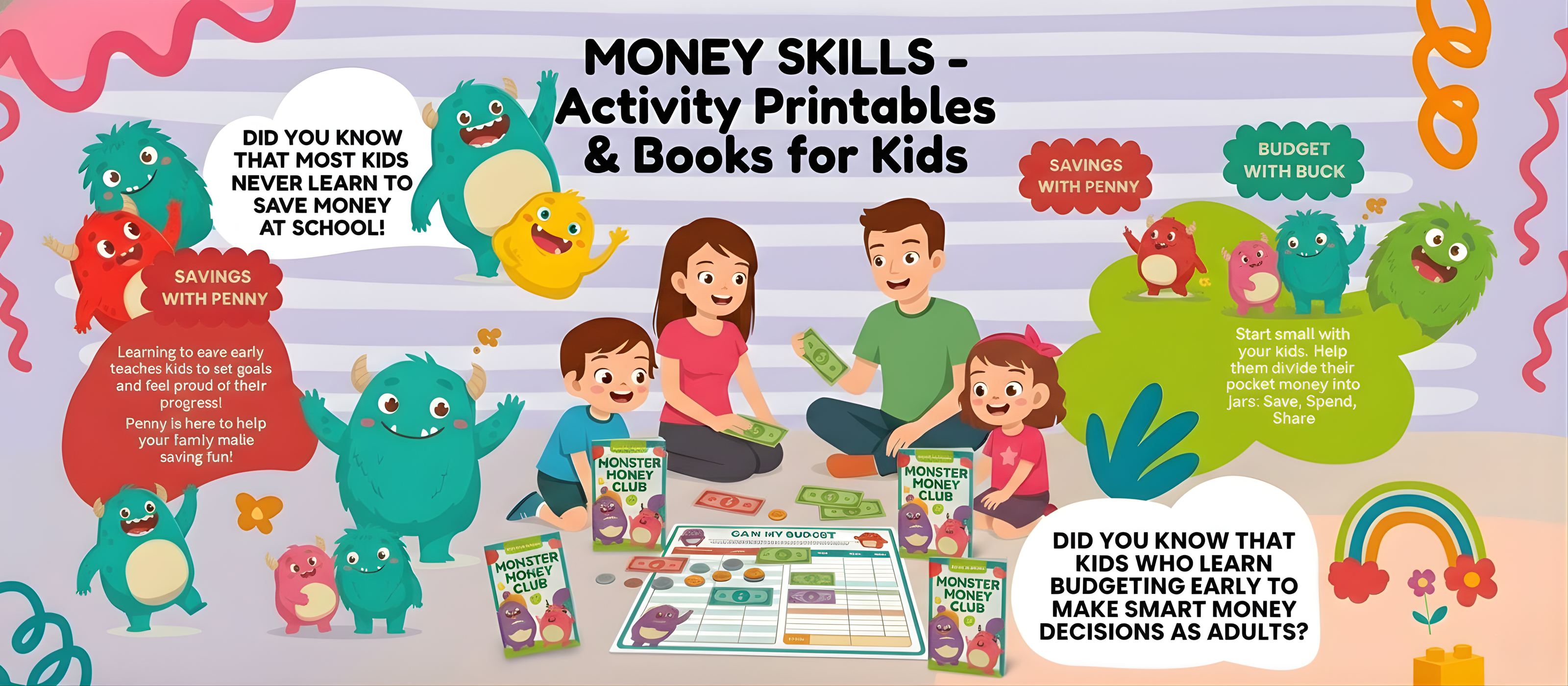Monster Money Club helps kids aged 5–14 build essential money skills in a fun, simple, and engaging way. Through interactive stories, printable activities, and hands-on family experiences, children learn how money works in real life.