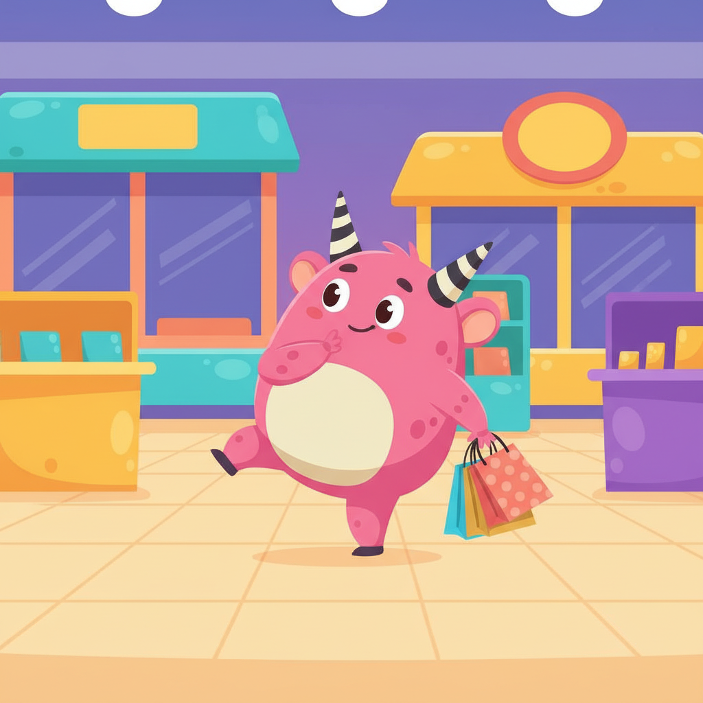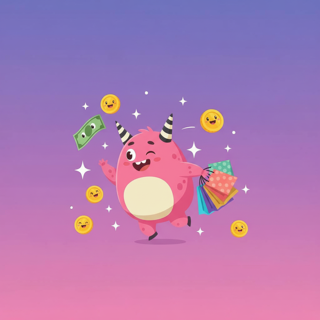 Poppy the Spender is a fun-loving pink monster with signature striped horns who loves shopping but always thinks before buying. She's enthusiastic, curious, and teaches kids that spending money can be joyful AND smart at the same time.